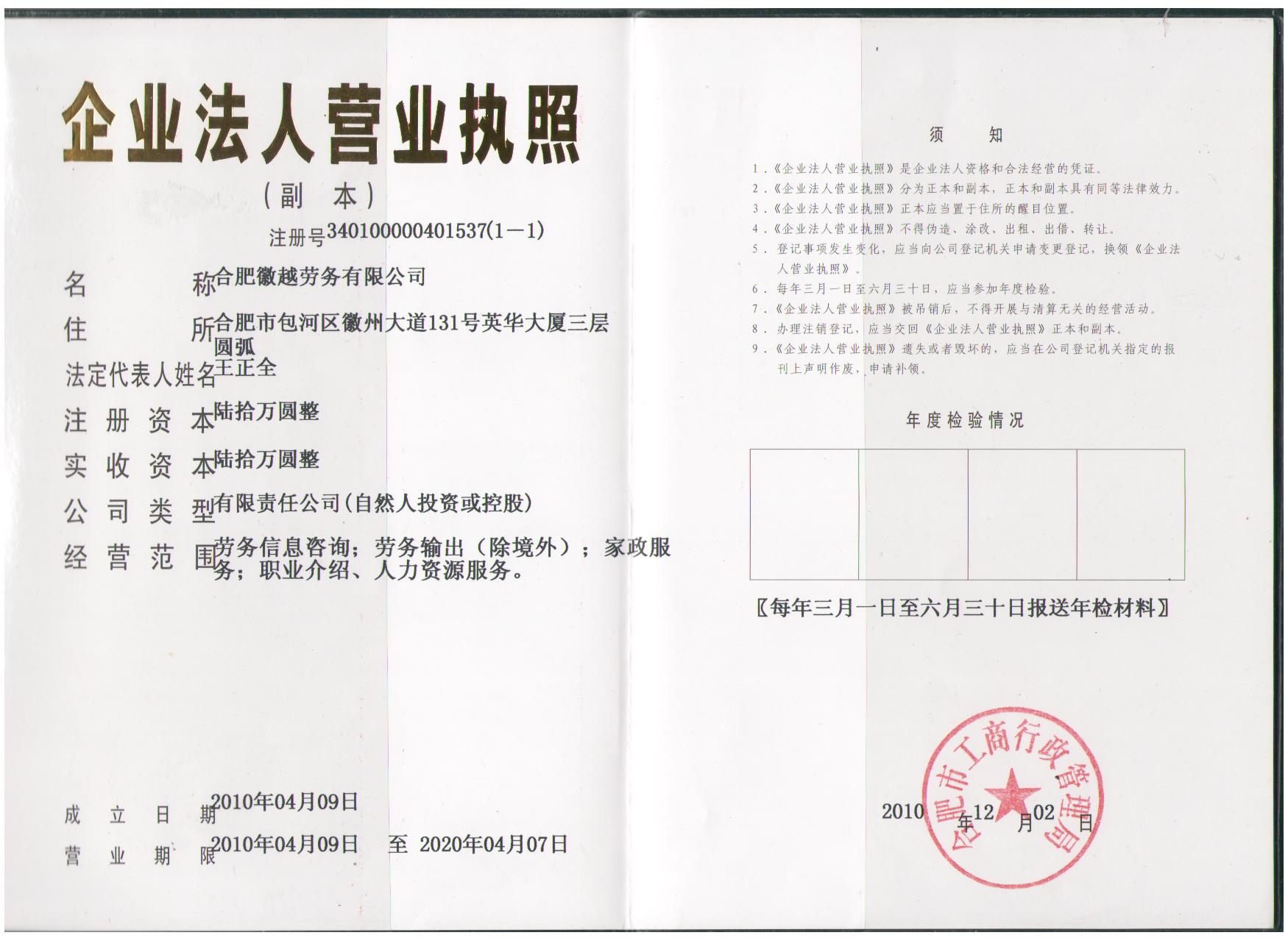 ·公司名稱:安徽徽越建筑勞務有限公司